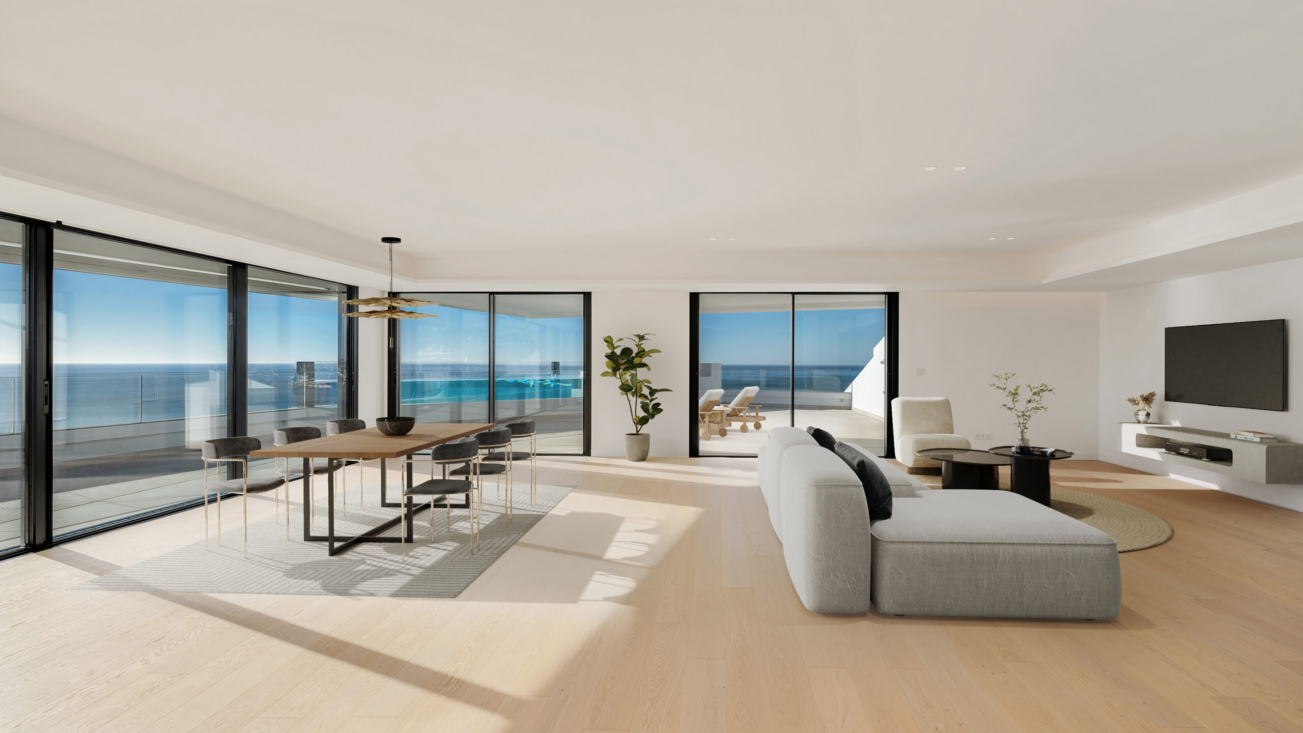 Las viviendas de Carat han sido diseñadas creando espacios abiertos y luminosos con grandes ventanales y paredes correderas para obtener la mayor sensación de amplitud posible. Sin olvidar las grandes terrazas con unas espectaculares vistas al mar y sus modernas instalaciones equipadas con la última tecnología para una vida más confortable.