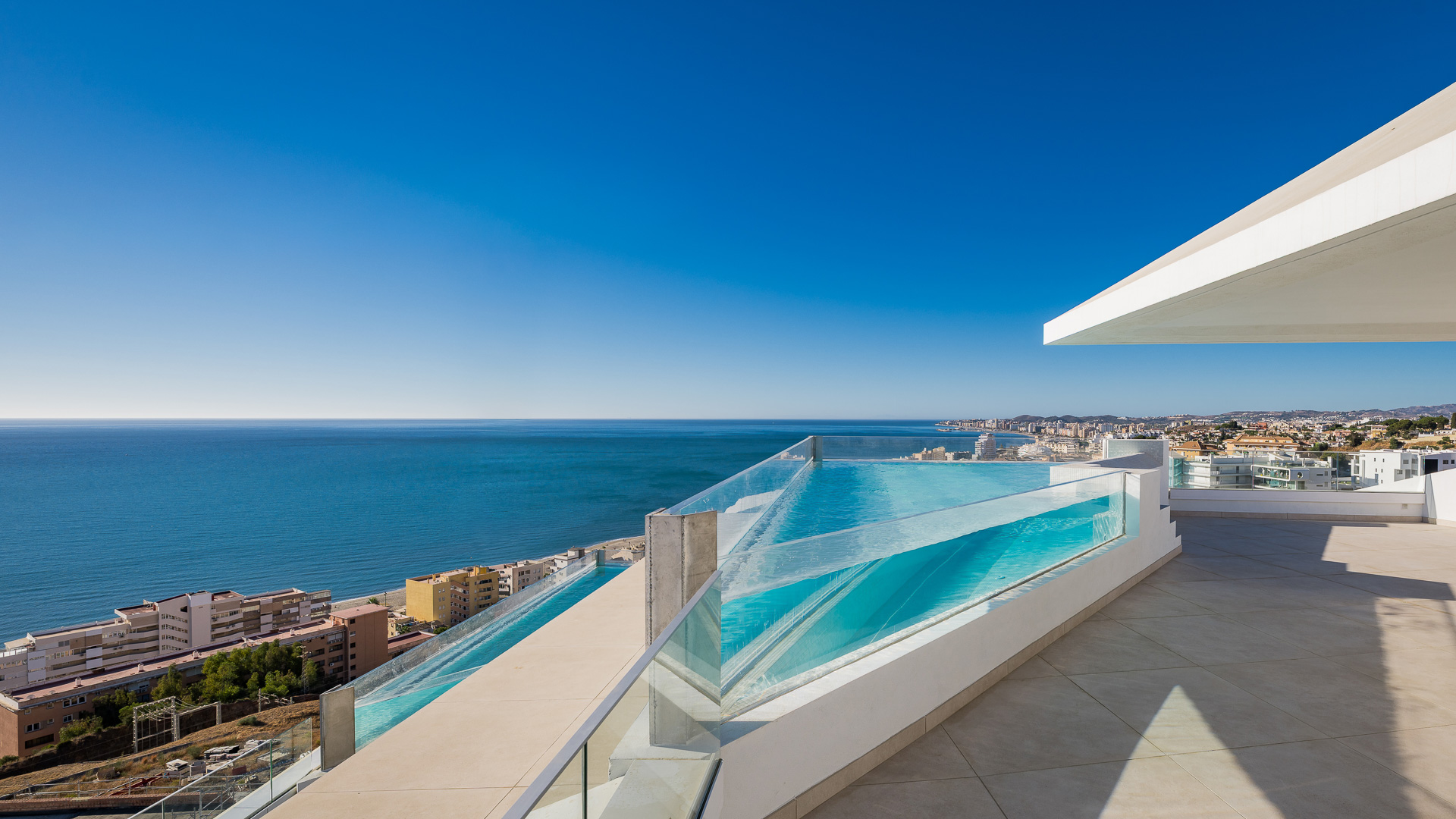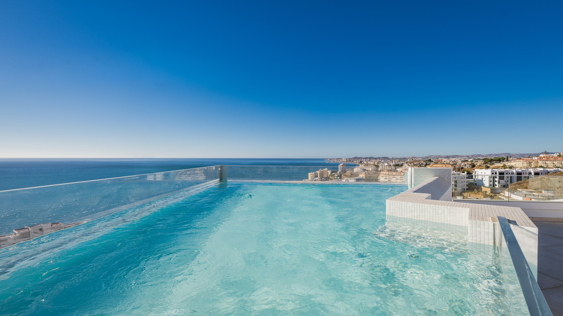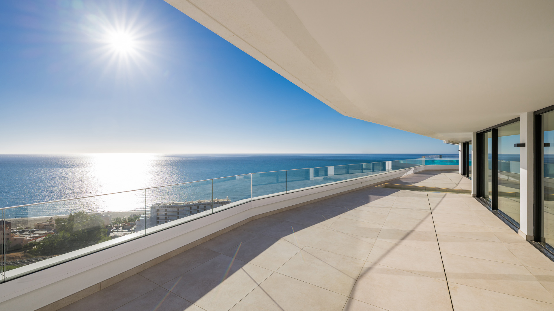 Carat Sky Villas es un exclusivo complejo residencial de apartamentos y áticos de 2 y 3 dormitorios situado a 200 metros de la playa con unas espectaculares terrazas con vistas al Mediterráneo, parking para dos o tres vehículos, trastero, cocina completamente equipada, sistema domótico y zonas comunes que incluyen piscina infinity exterior y climatizada interior, solárium, zona deportiva, coworking, seguridad 24/7,…